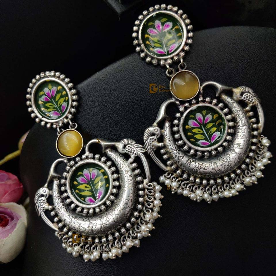 Silver Handmade Work Replicaa Hoop Earrings for Girls' Casual & Party Wear Featuring Pearls & Diamonds Great Gift Idea