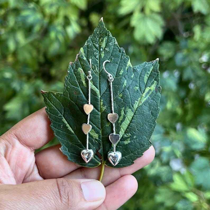 Silver Heart Long Earrings Sterling Silver Handmade Jewelry Designer Gift For Birthday Elegant And Minimalist
