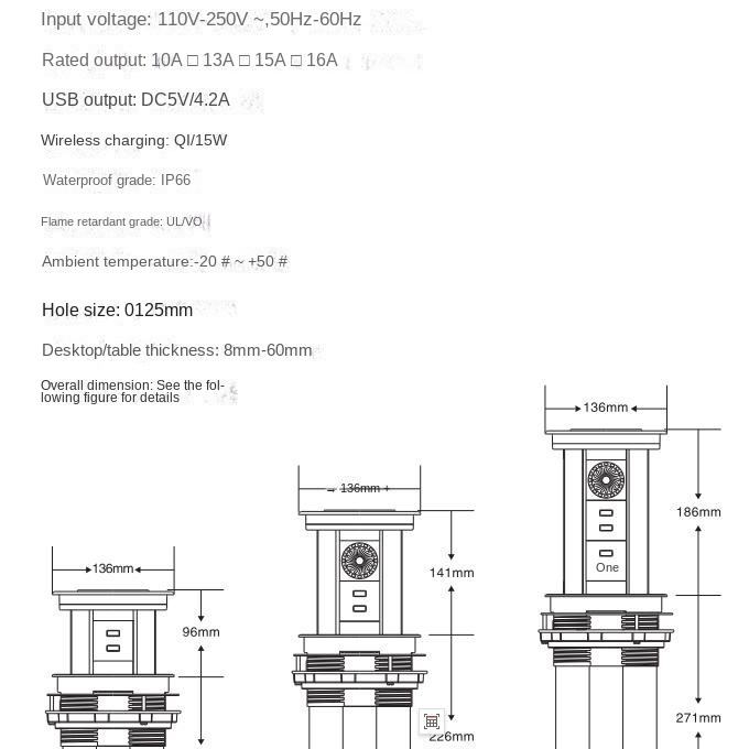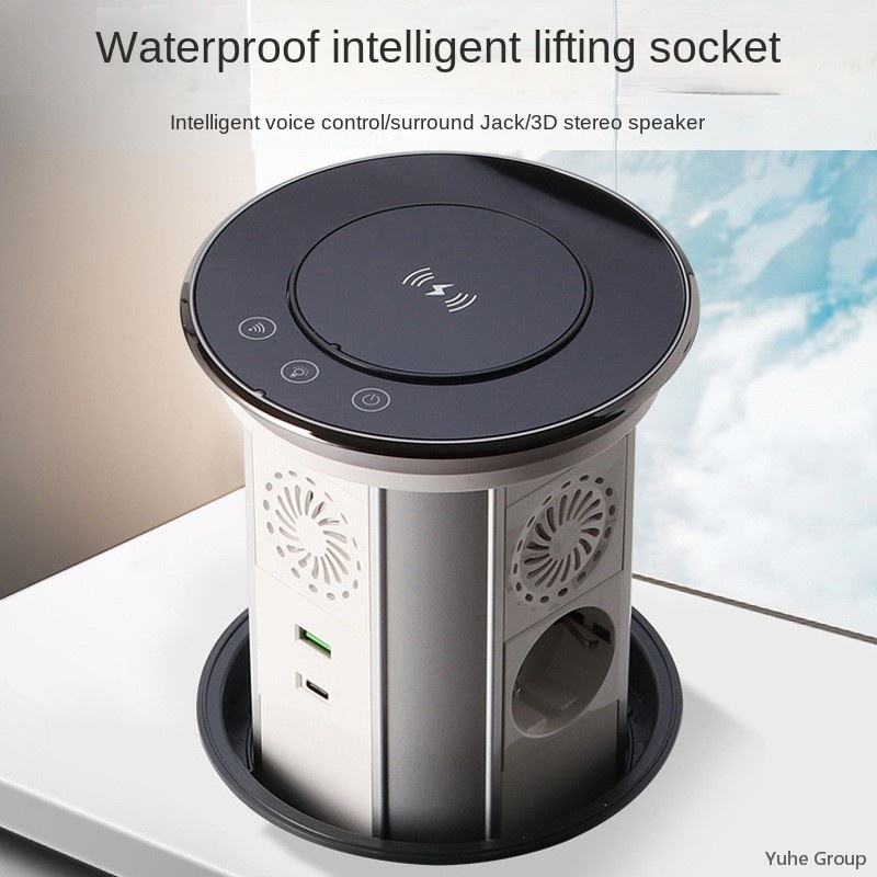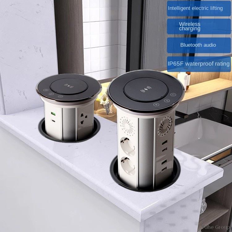 Silver Hidden Motorized Lifting Pop up Desk Plug Socket for Kitchen Office