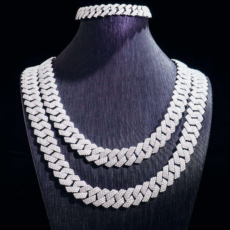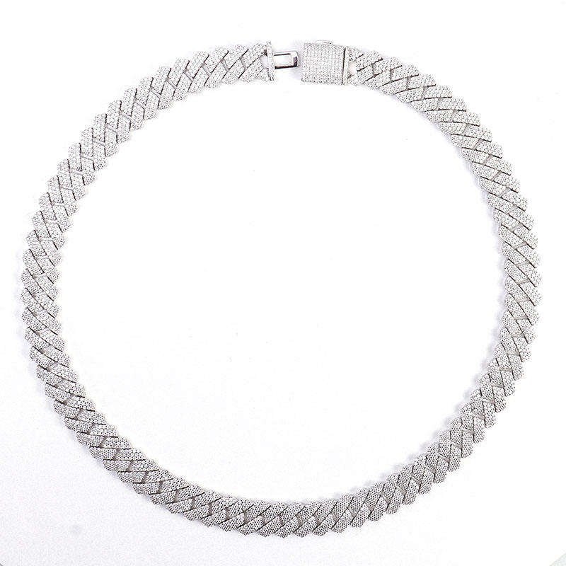 Sterling Silver Lab Grown Hip Hop Mens Choker Necklace Silver Plated Cuban Link Chains Rope Diamond Chain