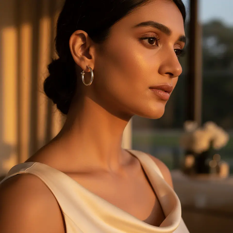 Silver Hoop Earrings for Women Daily Wear Trendy Religious Huggie with Geometric Diamond Rhodium Plated Rose Gold Jewelry