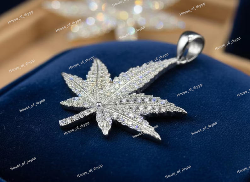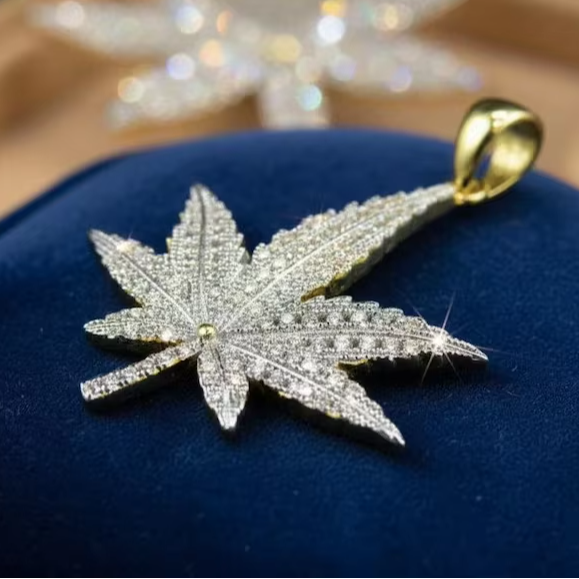 Silver Iced Out Leaf Pendant Moissanite Diamond Look Bling Necklace Street Style Statement Jewelry Gift For Men