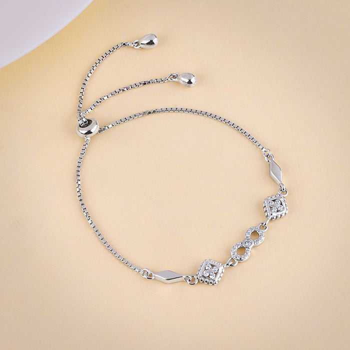 Silver Infinity Zircon Bracelet with Gold and Rhodium Plating White Gold and Rose Gold Charm Bracelets Religious Style Bangles