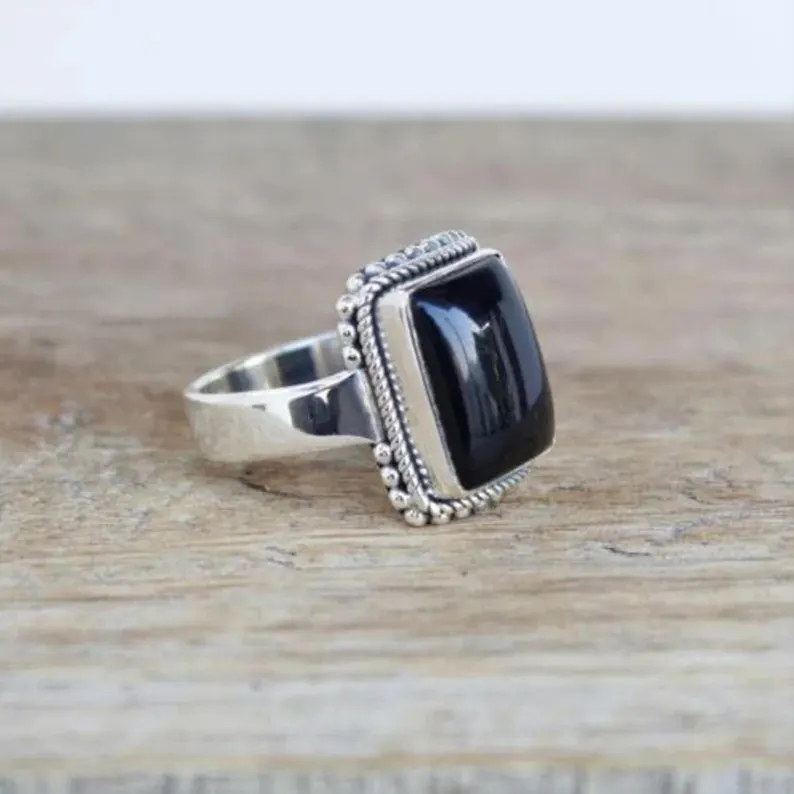 Silver Jewelry Wholesale 925 Silver Black Onyx Rectangle Shape Unisex Ring Handmade Jewelry Partywear
