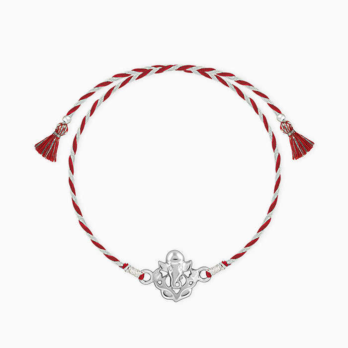 Silver Leaf Ganesha Rakhi with Vintage Fashion Crystal Rhinestone Pendants