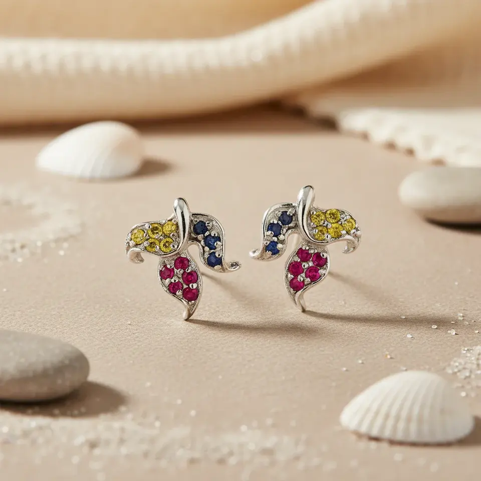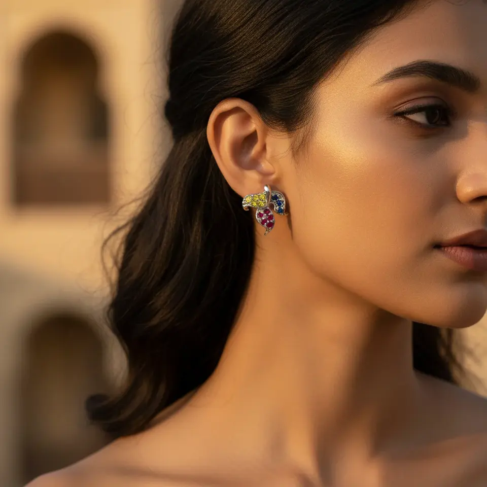 Silver Leaf Trendy Drop Earrings with Ruby Sapphire & Diamond Gemstones GIA Certified Gold Plated for Weddings Engagements