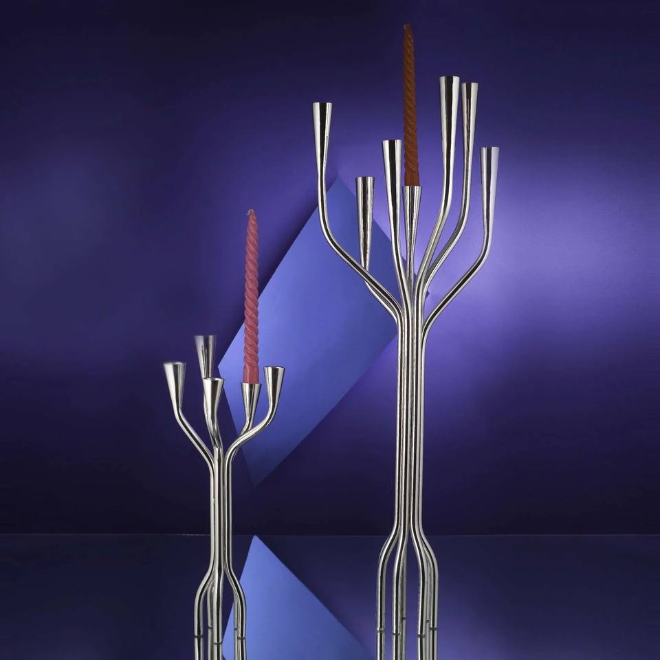 Silver Metal Candelabra 5-Arm Candlestick Holder Modern Table Centerpiece Decor