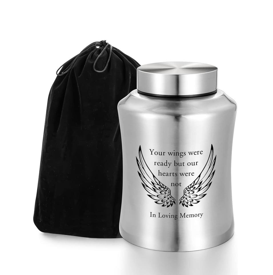 Silver Metal Cremation Urn Wings Engraved Funeral Urn for Ashes Memorial Tribute Adult Secure Lid Durable Keepsake Remembrance