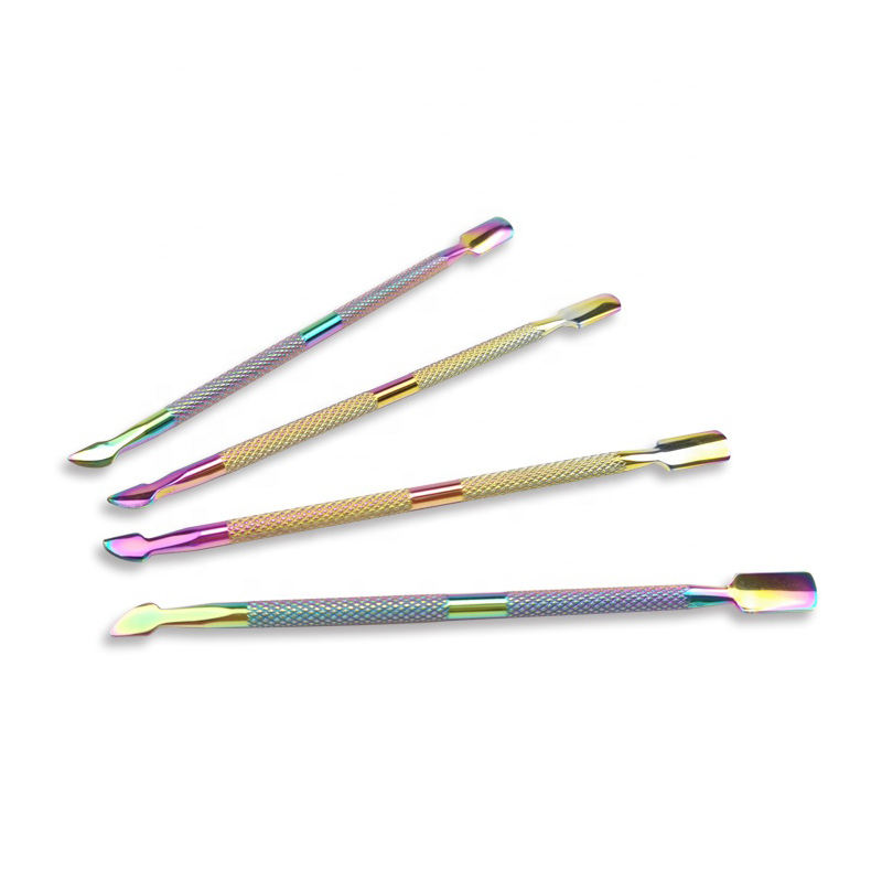 Silver Mirror Polish 2-In-1Sustianable Stainless Steel Cuticle Nail Pusher Manicure Tools Gel Remover Metal Nail Pusher