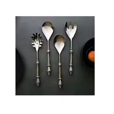 Silver Mirror Polished With Marble Hammered Handle Salad Serving Set New Salad & Soup Rice Servers Including Spoon & fork