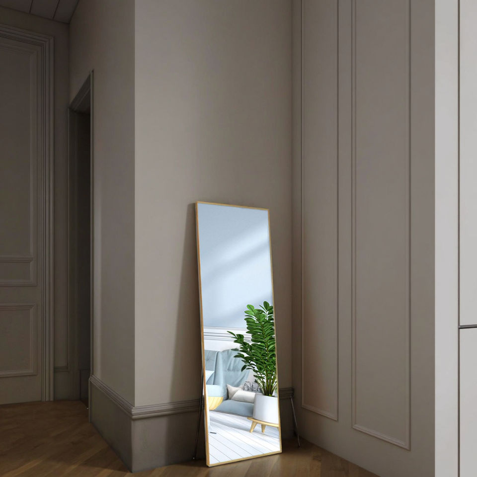 2025 Trending Custom Gold Frame Compact Silver Decorative Plastic Floor-Standing Glass Mirrors for Living Room Furniture