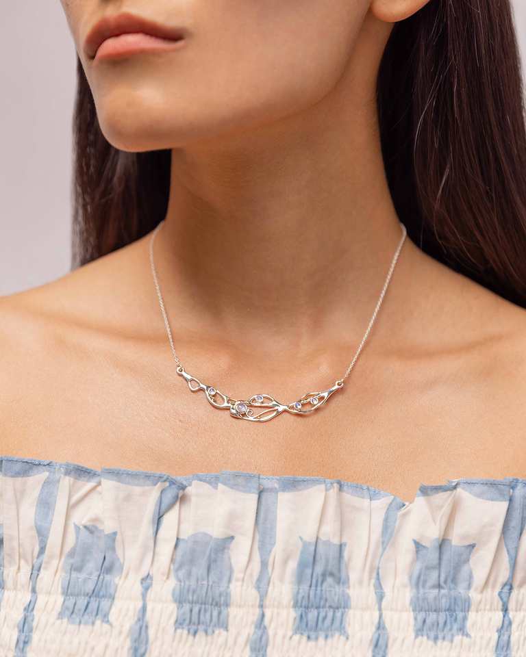 Silver Moonstone Necklace, Rainbow Moonstone Organic Flow Statement Necklace 925 Sterling Silver Necklaces Gift for Wife Wear