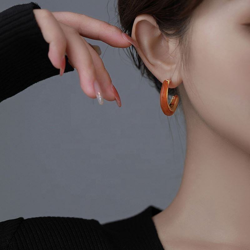 Silver Needle French Retro Resin Stud Earrings High-End New Trendy Princess Cut Diamond Vintage Style Gold Plated Copper Gifts