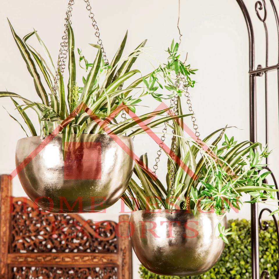 Silver Nickel Plating Hanging Planter with Round Shape Design Balcony Hanging Round Planter for Home Decorations