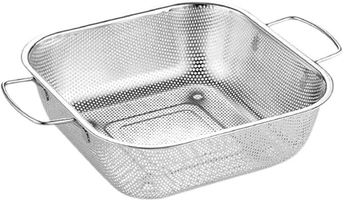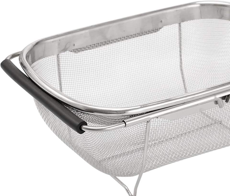 Silver Oval Sink Basket Colander Rubber Grip Handle Fine Mesh Strainer Draining Rinsing Vegetables Sympathy Art Deco Design