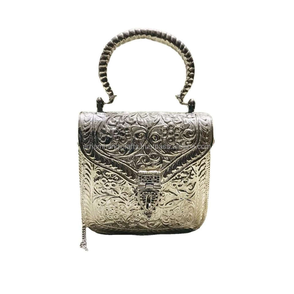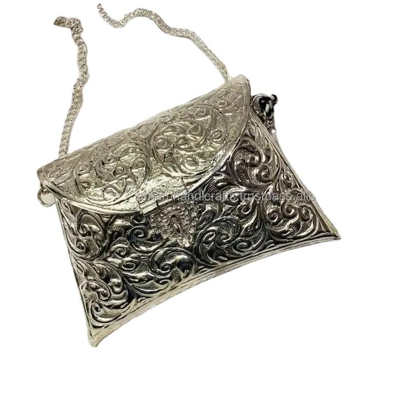 Silver Oxidized Ladies Luxury Handcrafted Brass Clutch Multipurpose Fashion Dress Evening Party Handbag Messenger Bag Handmade