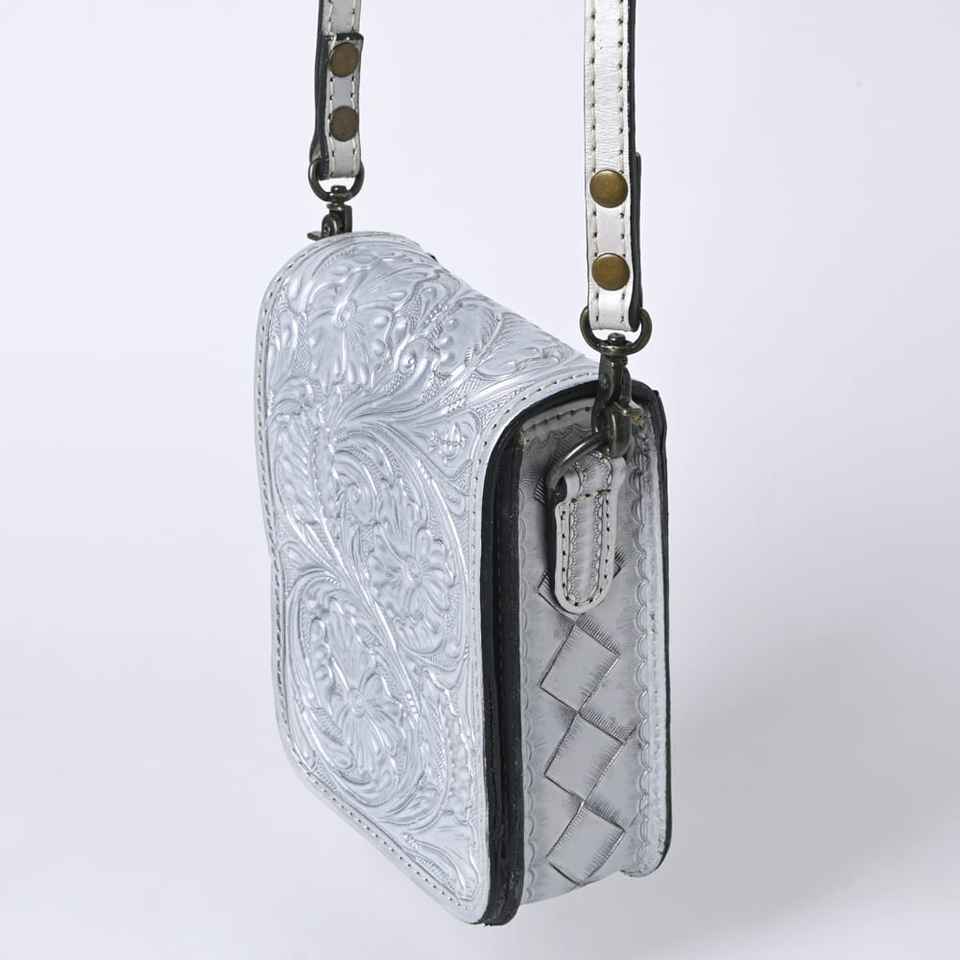 Newest Hair on Tooled Leather Phone Bag Western Genuine Leather Cell Phone Crossbody Bag Credit Card Holder Cowhide Floral Purse