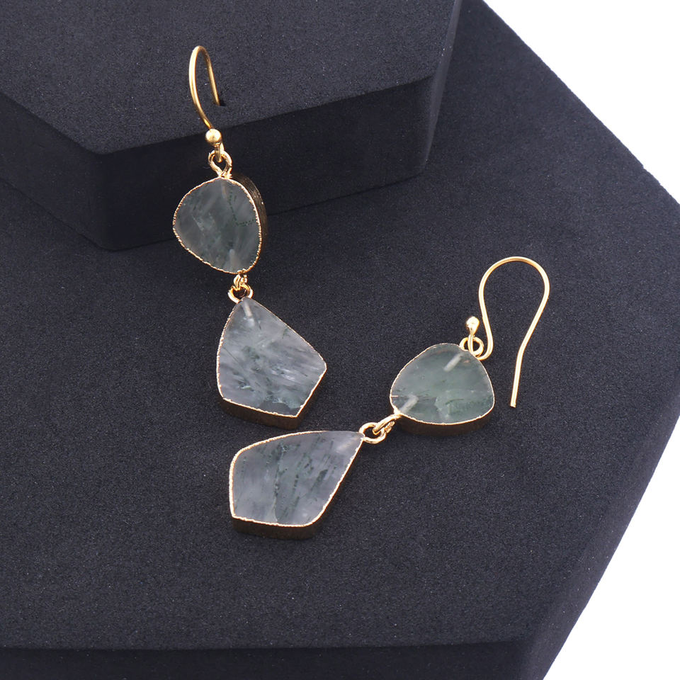Silver Pearl Double Stone Dangle Hook Earrings Wedding Gift Jewelry Gold Electroplated Brass Edge Fancy Shape Wedding Gift