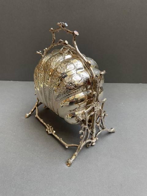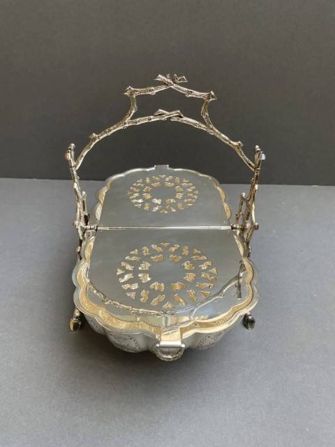 Silver Plated Biscuit Box Victorian Folding Clam Shell Bun Warmer Engraved Floral Design Branch Stand Vintage Tableware Decor