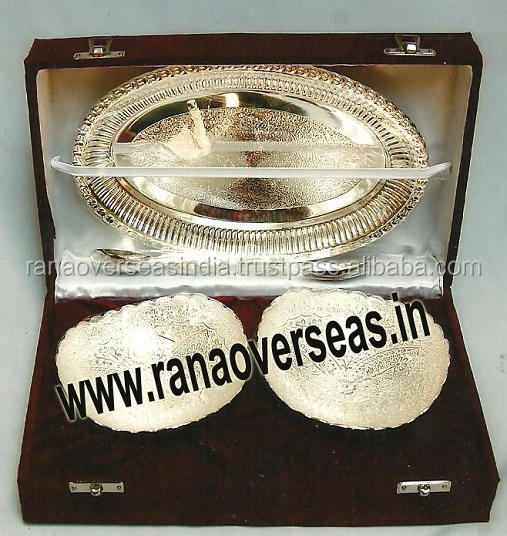 Silver Plated Brass Tableware Designer Serving Bowls with Spoons & Tray for Christmas Wedding and Gifts
