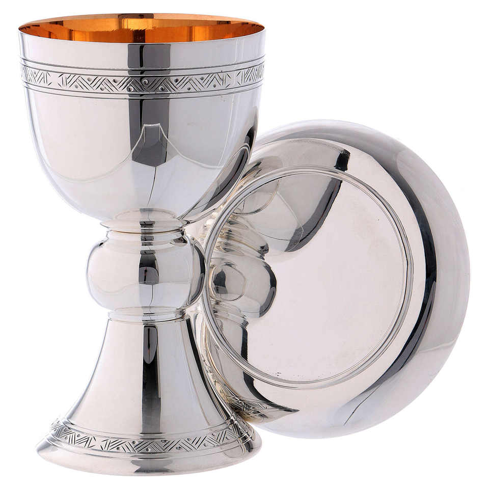Silver Plated Chalice with Paten Elegant Religious Communion Cup Set for Church Altar Worship Mass and Sacred Ceremony Usage