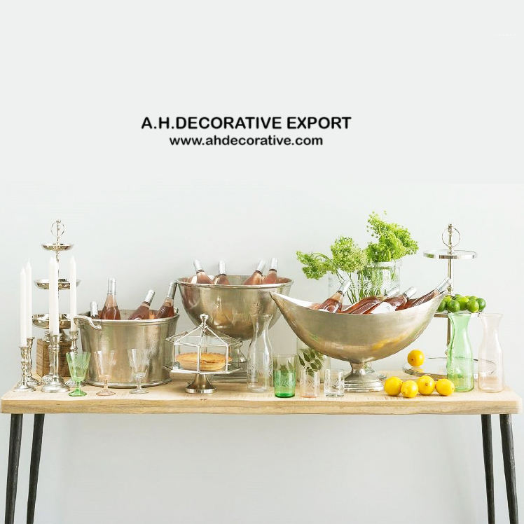 Silver Plated Curved Shape Champagne & Wine Ice Bucket Bowl Ice Cubes Cooling Bowl for Bar ware Vintage Looked Wine Bucket