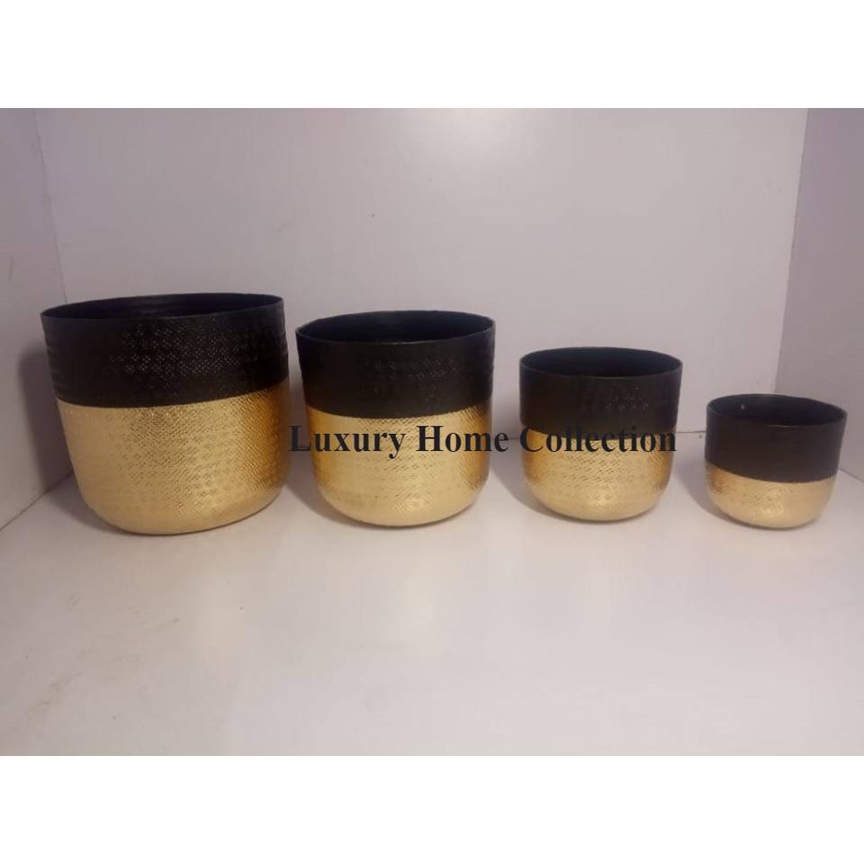 Silver Plated Decorative Metal Planters and Pots Tall Size With Black Color Holder Stand Garden Ware Balcony Decor Supplies