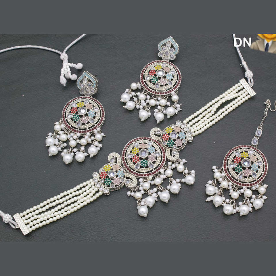 Silver Plated Fine Jewelry Set with Crystal Stone and Pearls 10581266ML Choker Necklace