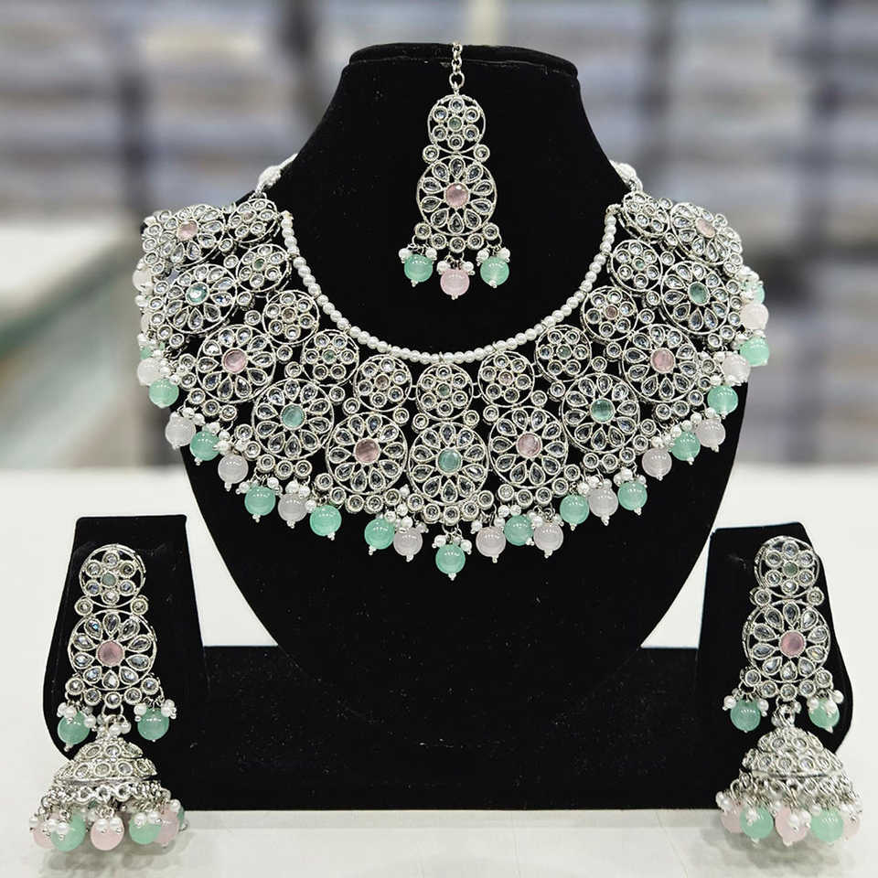 Silver Plated Fine Jewelry Set with Crystal Stone and Pearls 12881122PGR Necklace