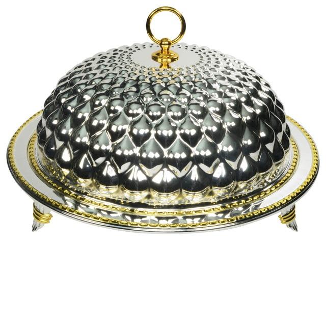 Silver Plated Finishing Metal Cake Stand Round Shape Cake Serving Stand With Glass Dome