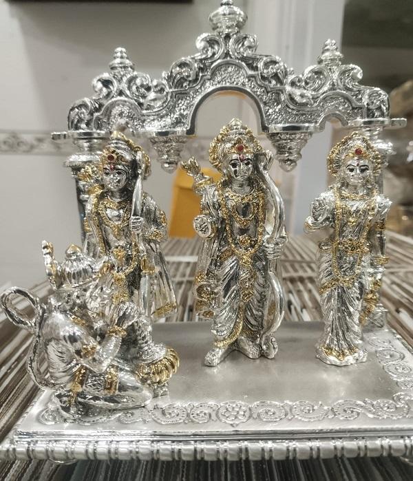 Silver Plated Handmade Ram Darbar Idol Rama Sita Laxman Hanuman Traditional Home Temple Art Decor Wedding Birthday Diwali Gift