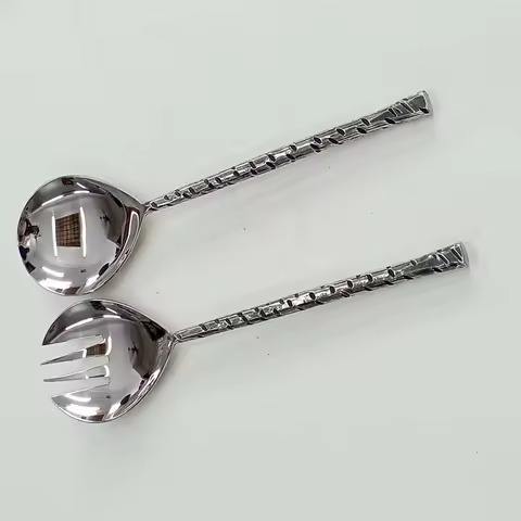 Silver Plated Metal Decorative Salad Servers New Design Lining Handle Salad Servers Including Salad Spoon and Fork Set
