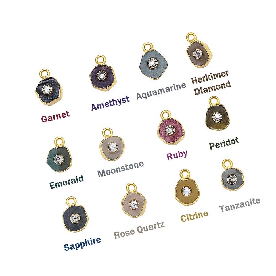 Silver Plated Raw Edge Birthstone Pendant Charm with CZ Accents 12 Birthstone Options Handmade Jewelry Making & DIY Necklace