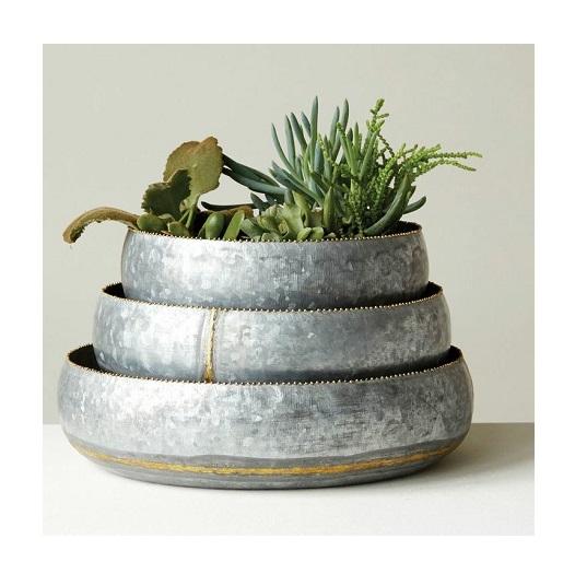 Silver Plated Round Metal Planter with Stand Shiny Plants for Outdoor Balcony Garden & Nursery Decor
