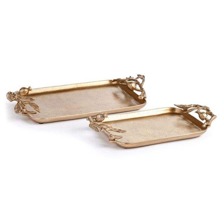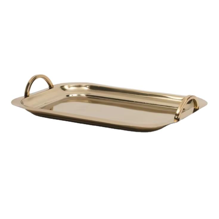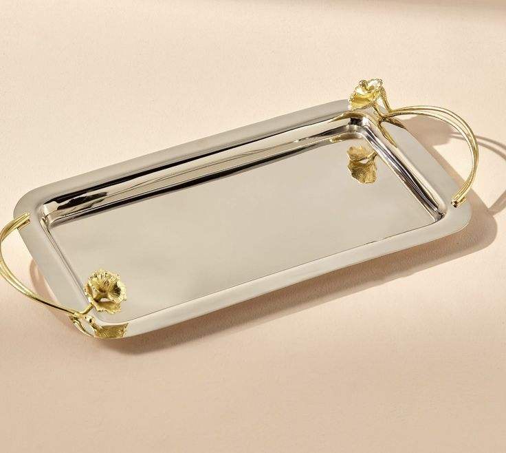 Silver Rectangular Serving Tray Gold Flower Handles Nickel Plated Decorative Platter Home Wedding Bulk Wholesale Elegant
