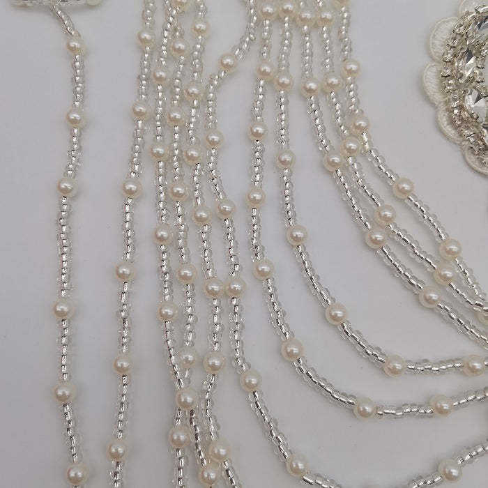 Silver Rhinestone Bodice Bead Fringe Crystal Bridal Applique Party Dress Dance Costume Wedding Bodice Bead Applique for Bridal