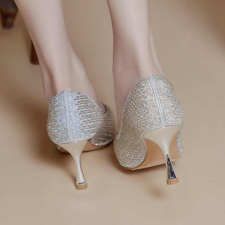 Silver Rhinestone Bridal Pumps Pointed Toe 7cm Heel