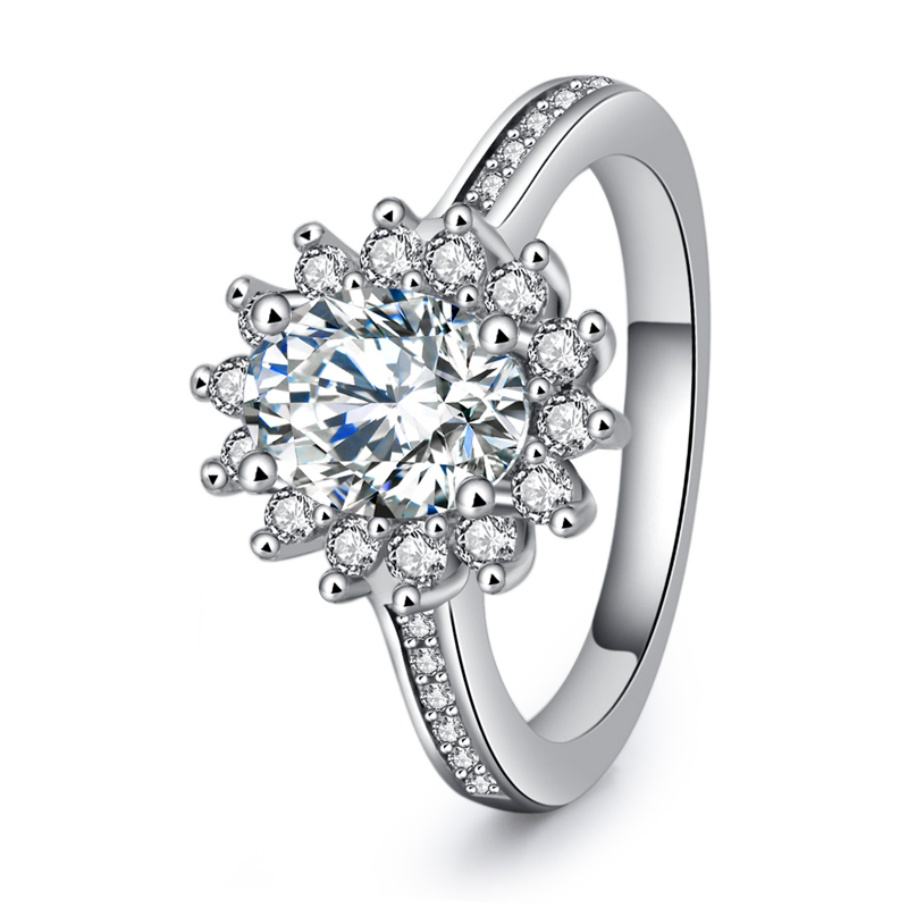 Silver Rhodium Plated Zircon Microscope Engagement Ring with Bohemian Style and Pave Setting for Anniversary & Party Wedding