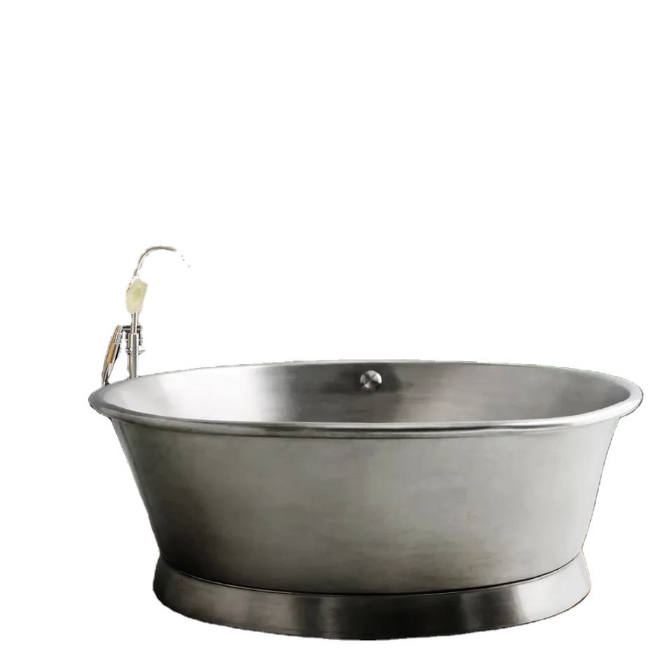 Silver Round Shape Double Slipper Luxury Free Standing Copper Bathtub Luxury Bath Tub Nickle Polished at Affordable Price