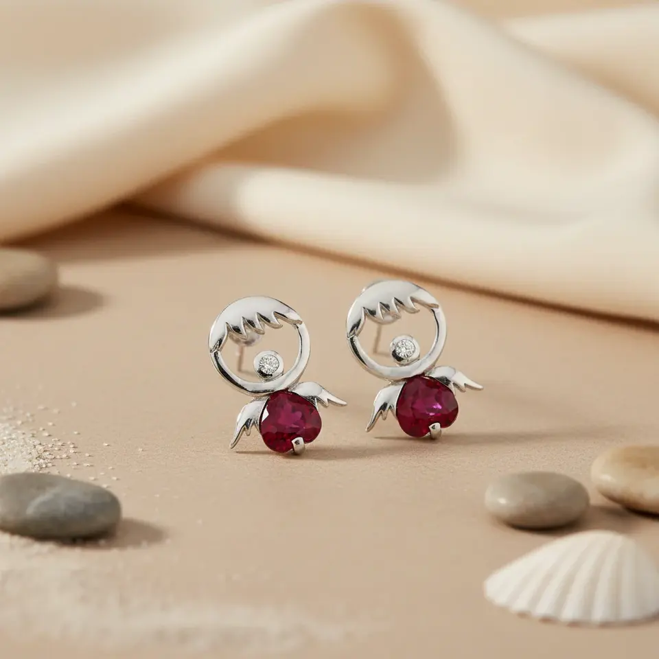 Silver Ruby Floral Stud Earrings for Women Trendy Vintage Huggie and Hoop with Zircon Pearl and Diamond Party Gift Jewelry
