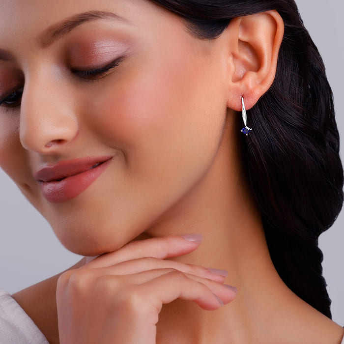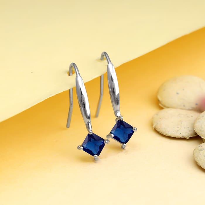 Silver Sapphire Blue Square Stud Earrings with Gold Plating Trendy Princess Cut Diamond Pearl for Weddings Engagements Parties