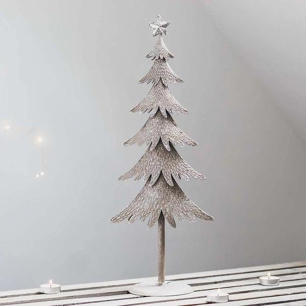 Silver Shiny Metal Xmas Tree Sculpture Stylish Holiday Decoration Living Room Table Mantel Desk Seasonal Festive Accent