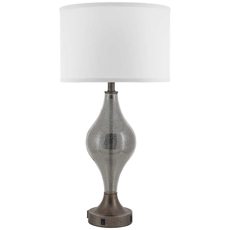 Silver Speckled Glass Globe Table Lamp, Vintage Modern Bedroom Lighting with USB & AC Outlet