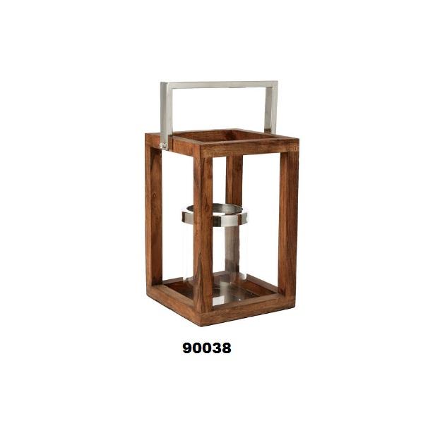 Silver Stainless Steel & Solid Wood Rectangular Shape Lantern Candle Holder Hanging Candle Holder for Home & Wedding Decoration