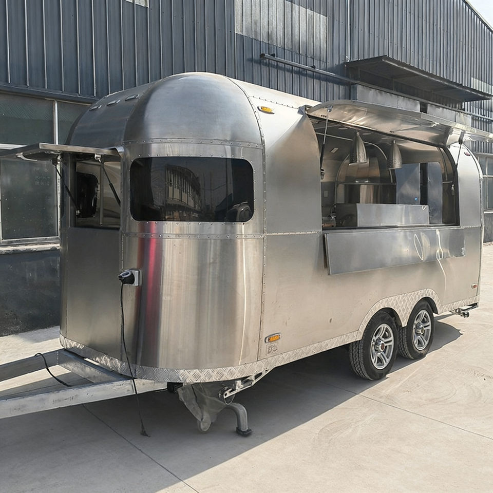 Silver Stainless Steel -Style Mobile Food Trailer Ice Cream Snack Food Commercial Catering 4 Wheel Built-In Heater