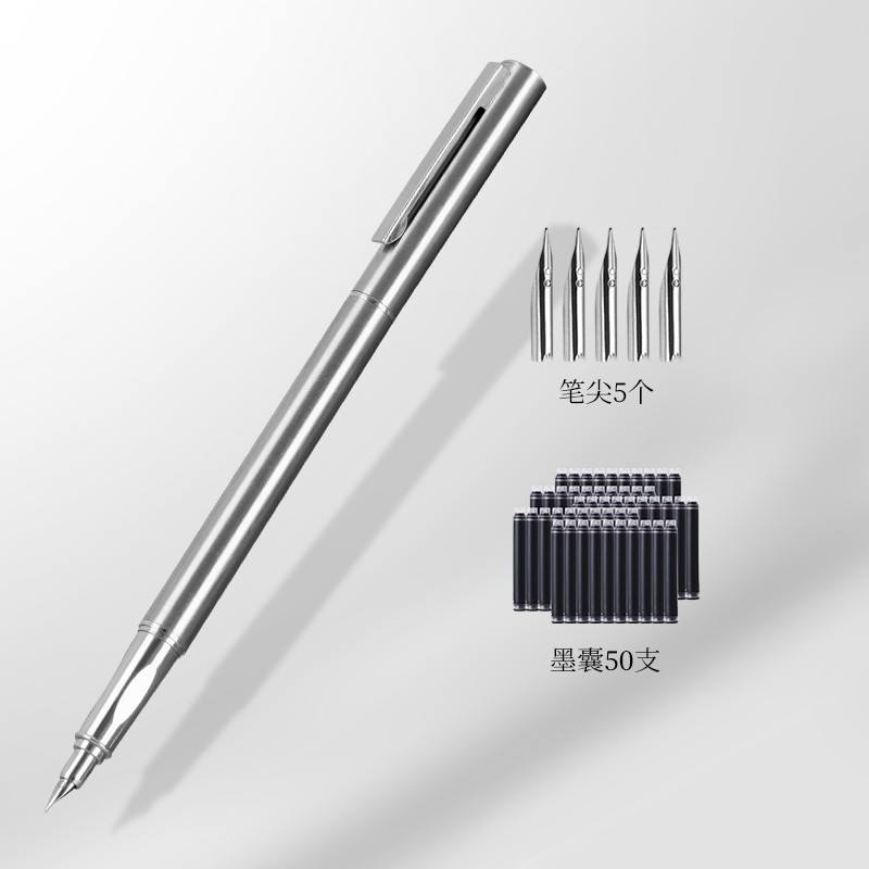 Silver Steel Metal Business Fountain Pen Sports 0.7mm Retractable Custom Pens Pantone Customize Pen