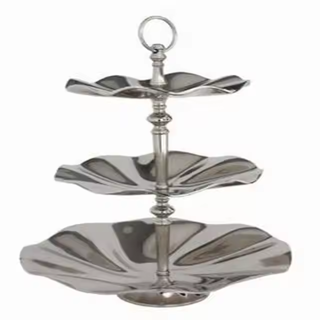 Silver Steel Metal Decoration New Large Antique Fancy Luxury Decorative Stylish 3 Tier Serving Cake Stand by Decor impex
