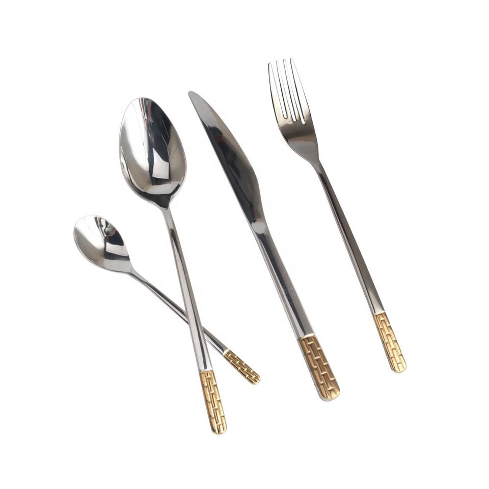 Silver Tableware Set Gold Accents Great for Family Gatherings & Daily Use Spoons, Knives, Teaspoons, Forks