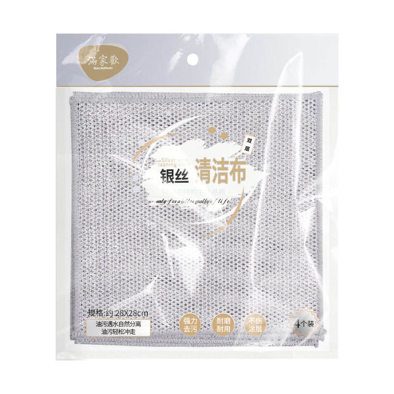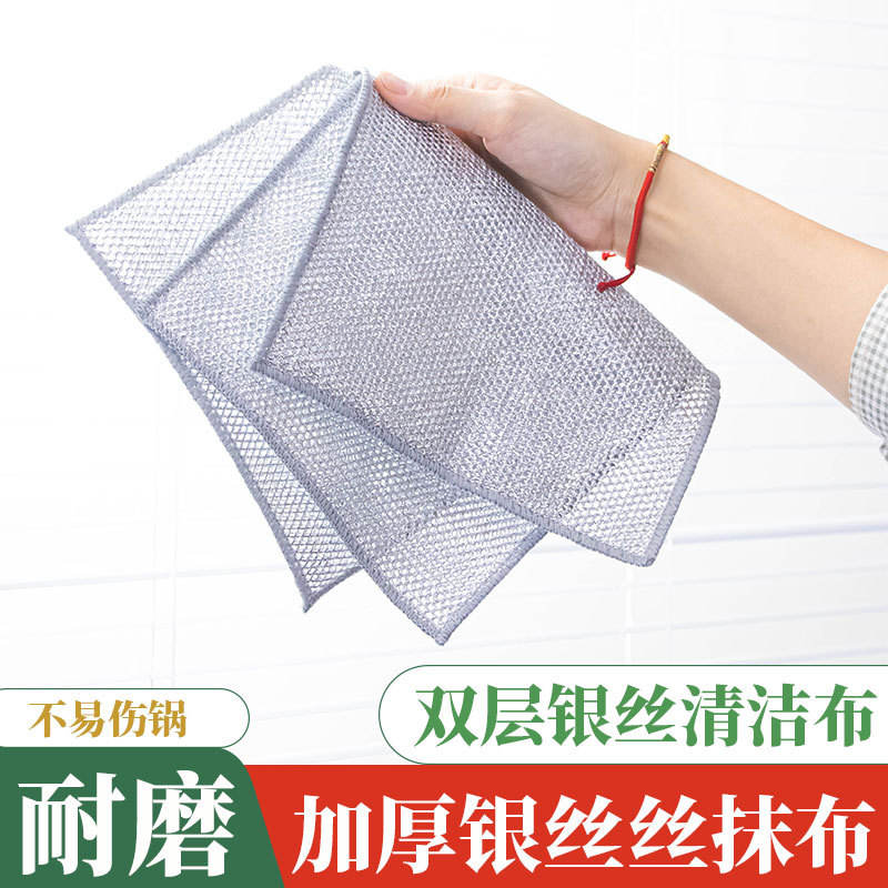 Silver Thread Dishcloth Rectangle Non-stick Oil Resistant Kitchen Cleaning Cloth Single Double Layer Stove Use 4 Pack 6 Pack
