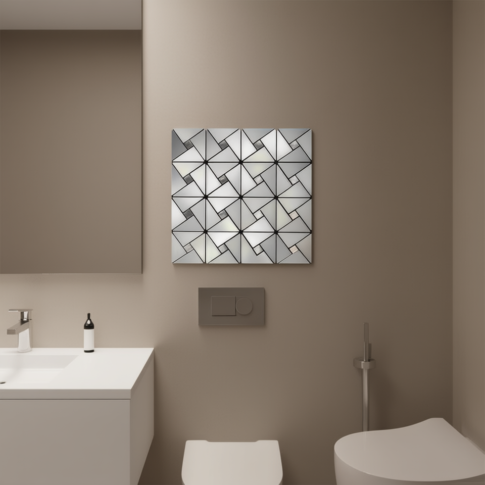 Silver Triangle Wall Tiles Brick Pattern Design Polished Porcelain 10mm Thickness For Interior Bathroom Use